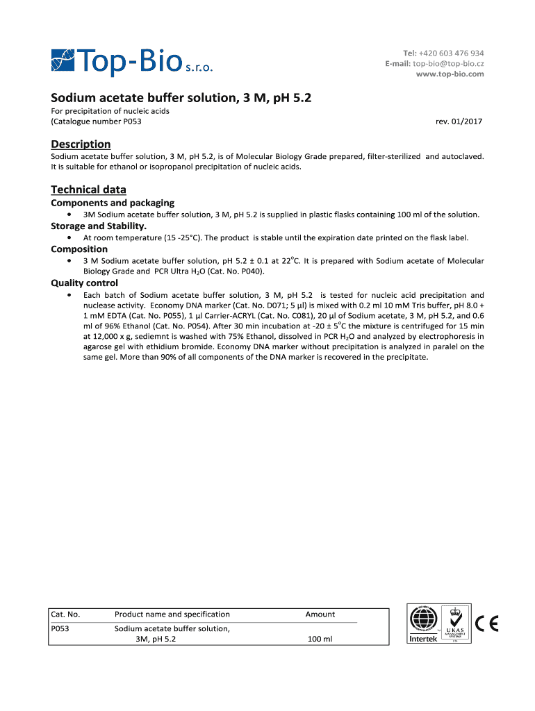 www.topbio.comSodium acetate buffer solution, 3 M, pH 5.2
