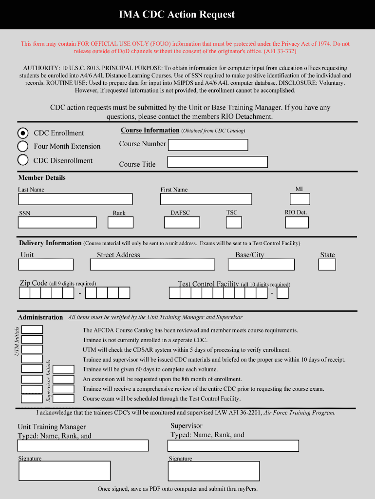 Visit the IMA CDC website or go to the CDC Action Request form directly.