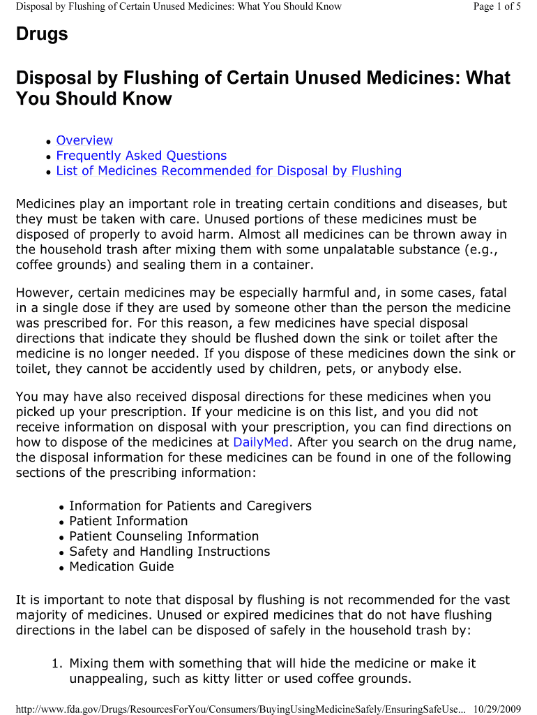 Get the free Disposal by Flushing of Certain Unused Medicines: What You Should Know