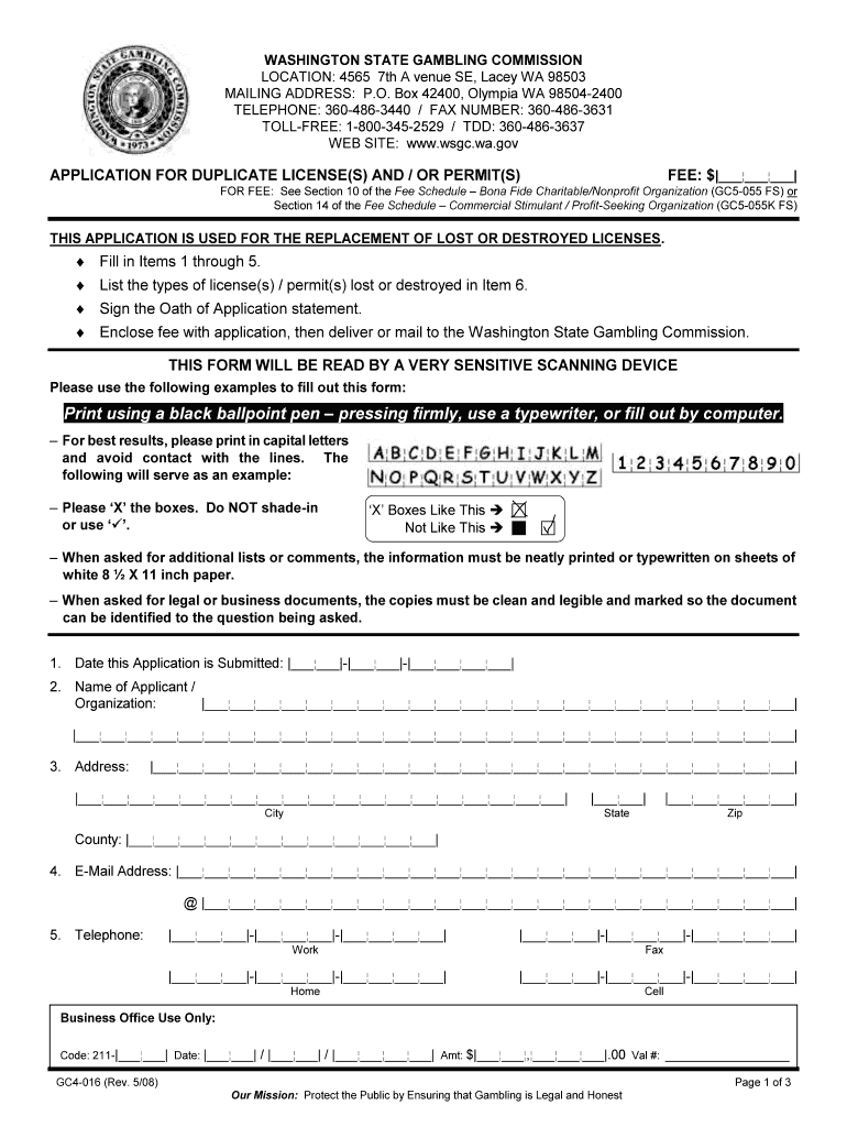 Get the free Application - Duplicate License or Permit - Washington State ... - wsgc wa