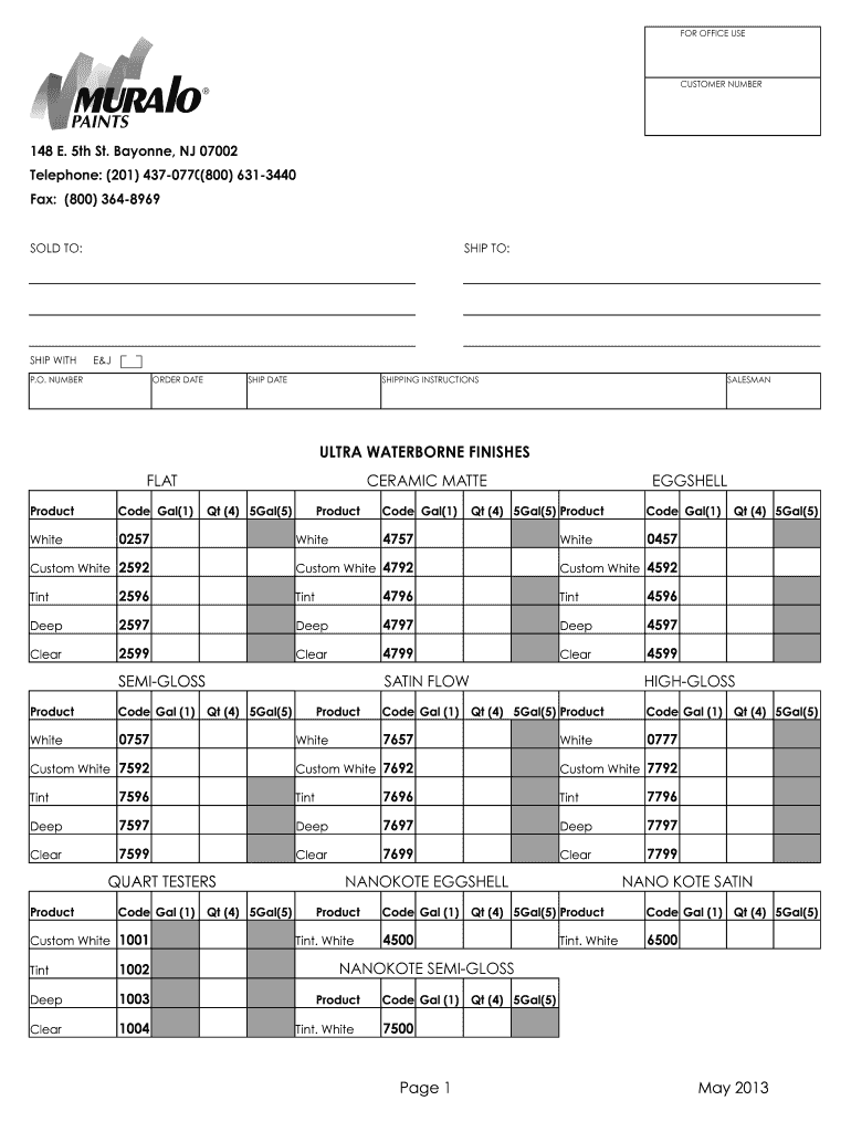 The Paint Product Order Form is a document used by customers to order various types of paint products from retailers or distributors.