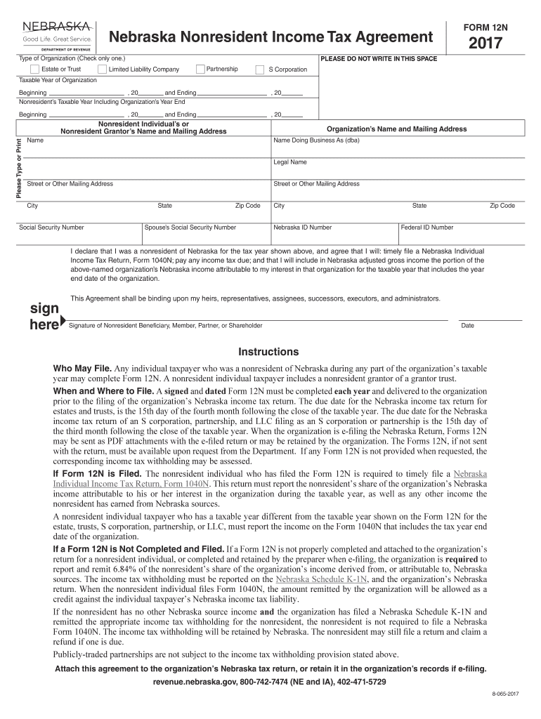 NE Form 12N 2017 free printable template