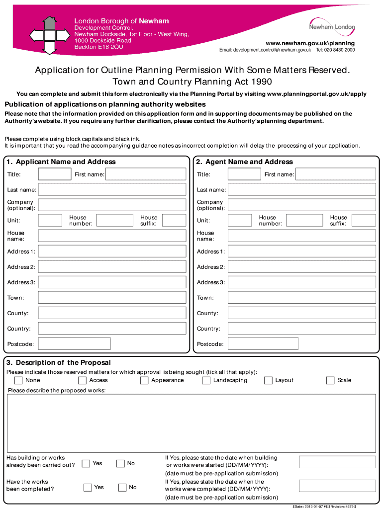 Application for Outline Planning Permission With Some Matters Reserved. ... this form electronically via the Planning Portal by visiting www.planningportal.gov.uk/ apply ... on this application form