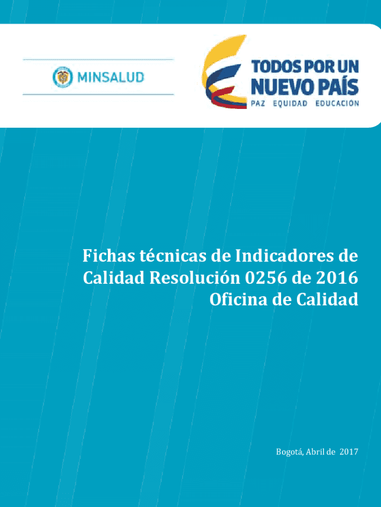 Fiches tunicas de Indicators de Calidad Resolution 0256 DE 2016 Official de CalidadBogot, April de 2017ALEJANDRO BAVARIA TRIBE Ministry de Salud y Protection Socialist FERNANDO CORNEA SERENA Viceministro