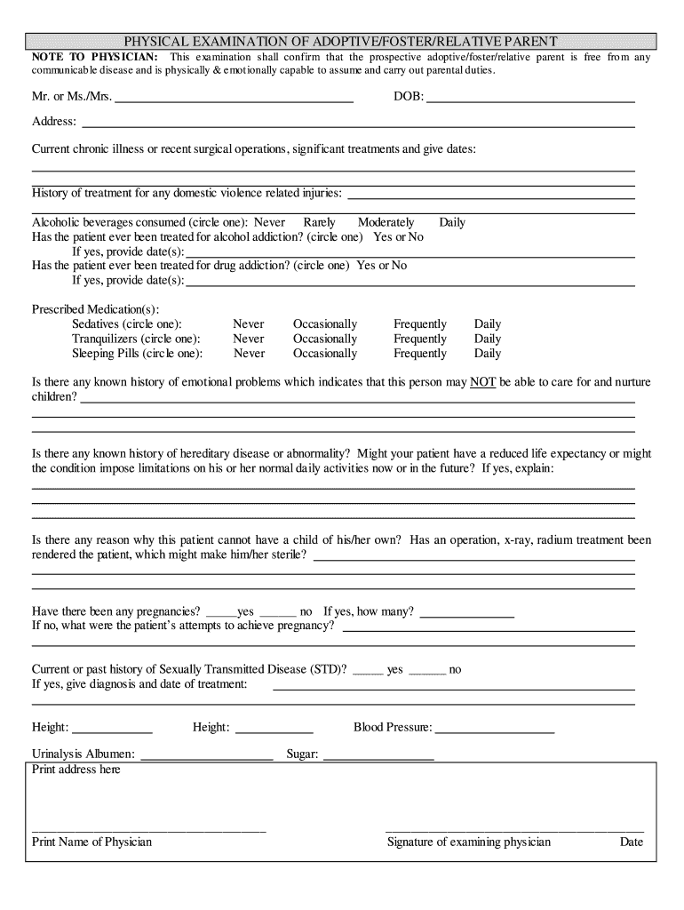 Get the free Adoptive Parent Physical Examination Form