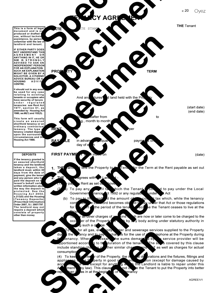 Sp Sp Sp Sp Sp pee e e e e CI CI CI I'm m m m m m en en en e TENANCY AGREEMENT This is a form of legal document and is not produced or drafted for use, without technical assistance, by persons unfamiliar