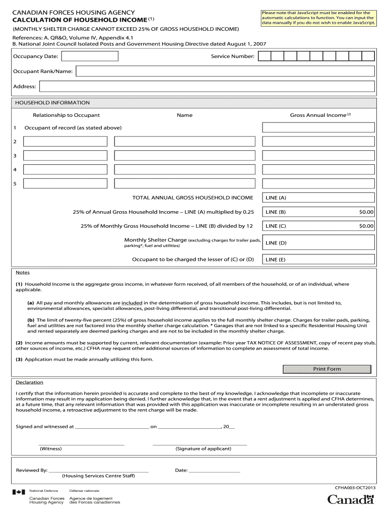 Get the free Canadian Forces Housing Agency Income Calculation Form