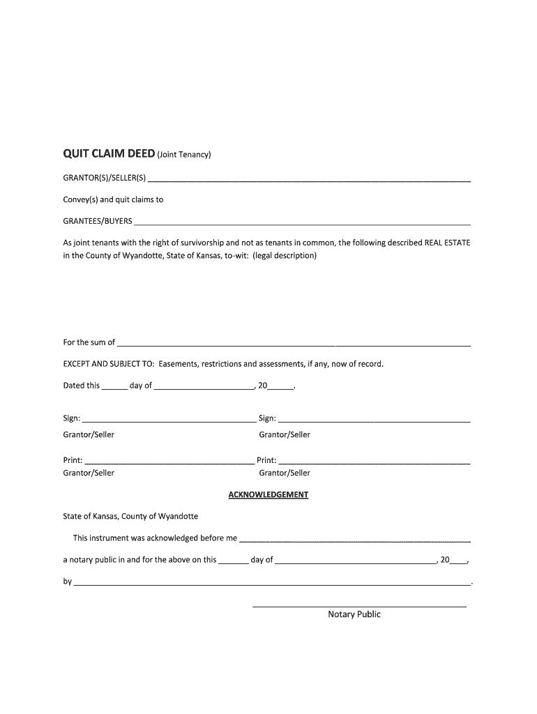 Get the free Quit Claim Deed Joint Tenancy
