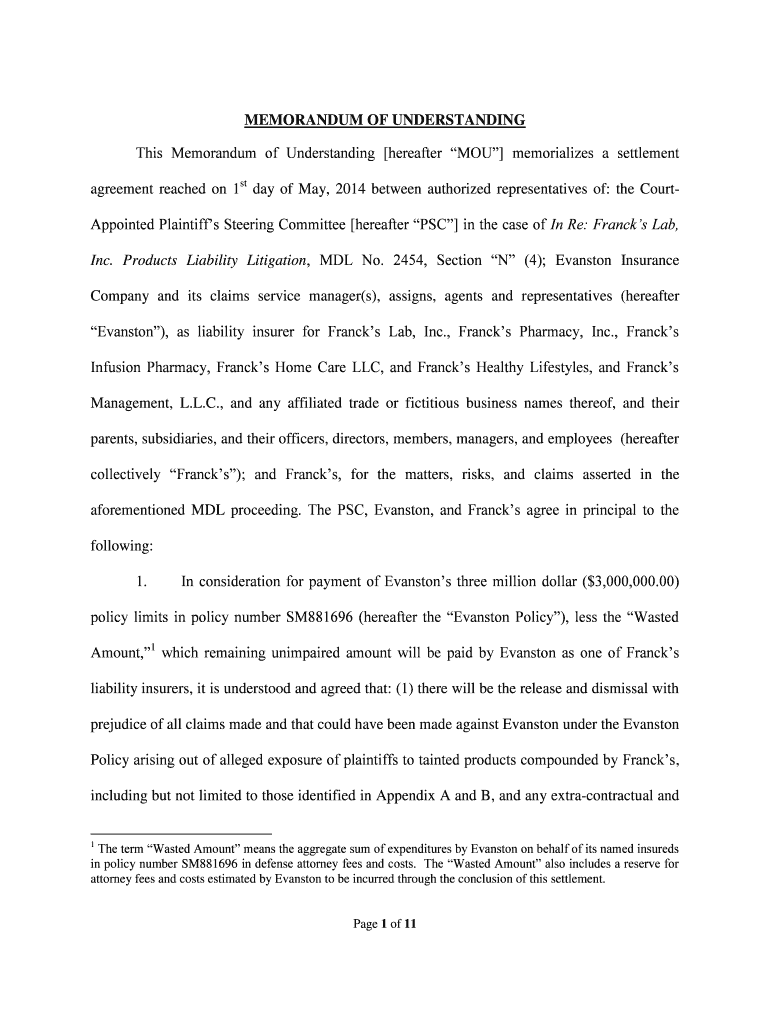 MEMORANDUM OF UNDERSTANDING This Memorandum of Understanding hereafter YOU memorialize a settlement agreement reached on 1st day of May 2014 between authorized representatives of: the Counterpointed