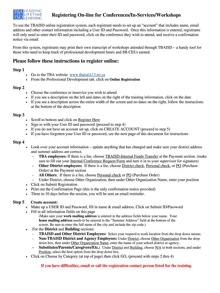 Get the free Online Registration Instructions - tbaisd k12 mi