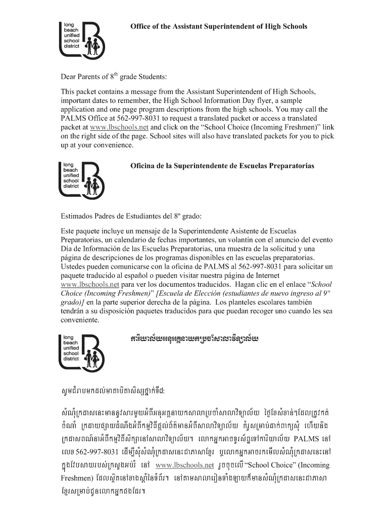 November 2011 Dear Parents of 8th Grade Students: As part of the Academic and Career Success Initiative, the Long Beach Unified School District is committed to preparing all students for college and