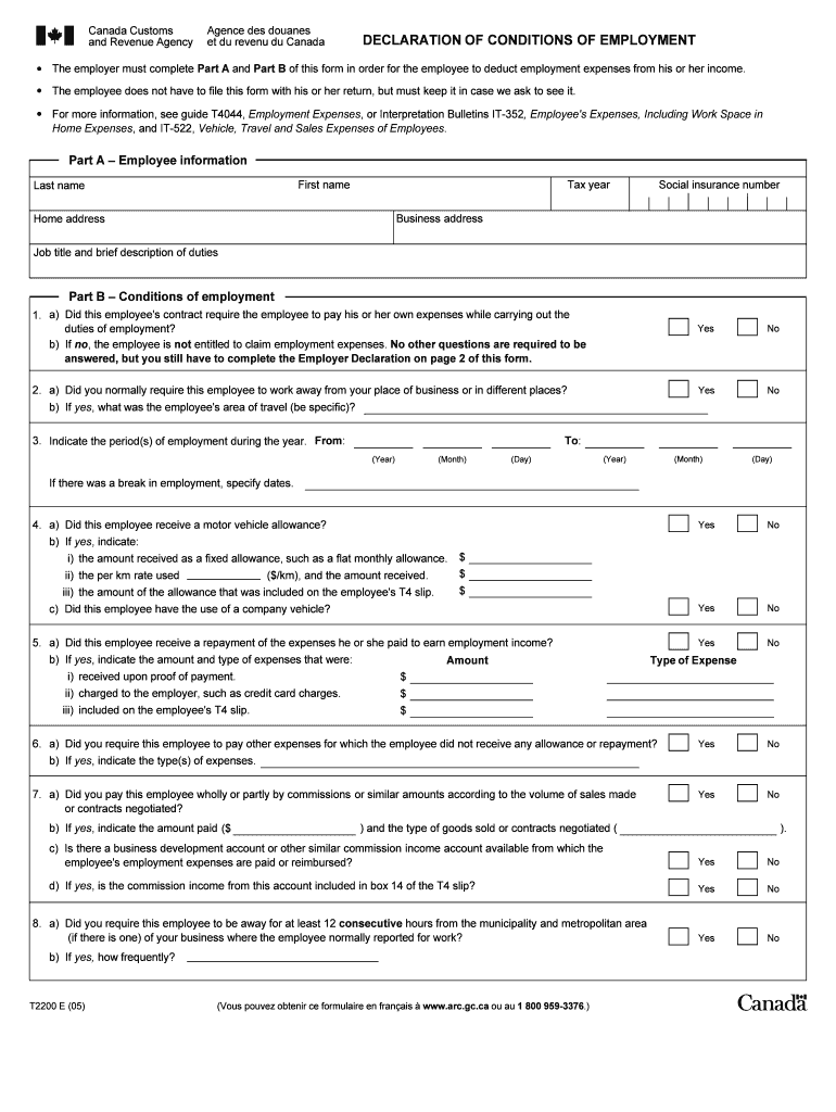The form needs to be completed by employers in Canada who wish to certify the work-related expenses claimed by their employees for tax deduction purposes.