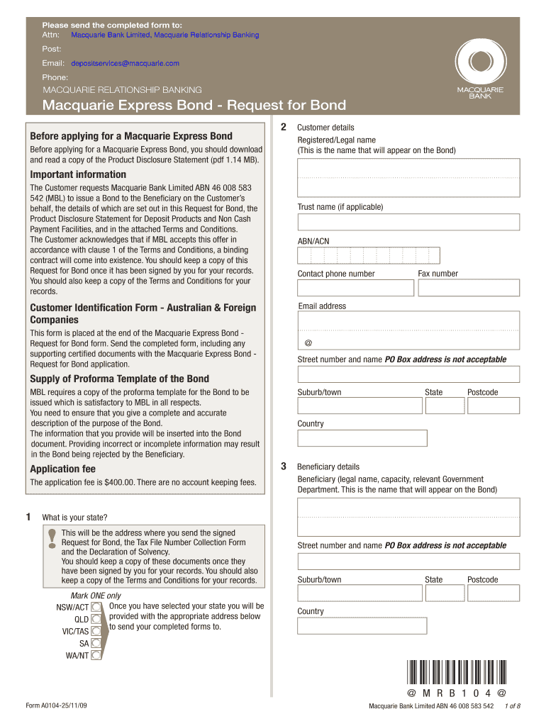 Get the free Macquarie Express Bond Request Form
