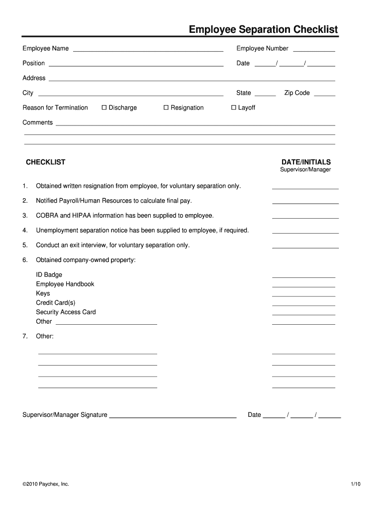 Get the free Employee Separation Checklist