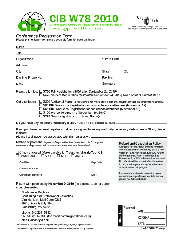 Conference Registration Formulas print or type complete a separate form for each participantName Title Organization×Org.s FID#Address CityStateZipDaytime Phone No. Fax No. Email Signature Registration