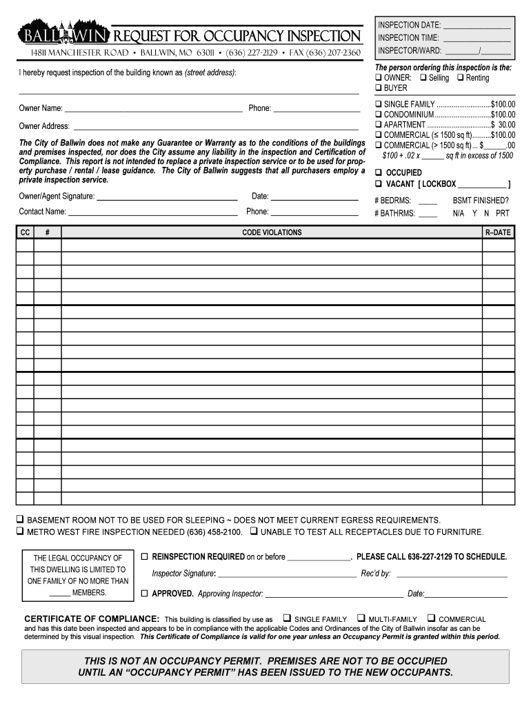 There may be fees associated with the Request for Occupancy Inspection. It is essential to check with local authorities regarding:
