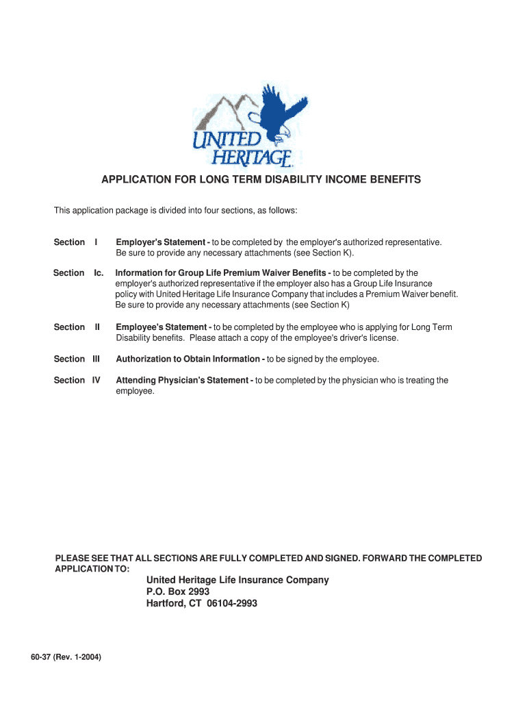 The detailed form provides an overview of the necessary steps to apply for long-term disability benefits, emphasizing the importance of each section.