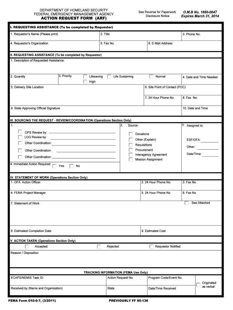 It's important to note that the ARF is recognized as outdated, with an expiration date of March 31, 2014. Despite its current status, understanding the form's requirements and significance remains vital for acquiring federal emergency management support.