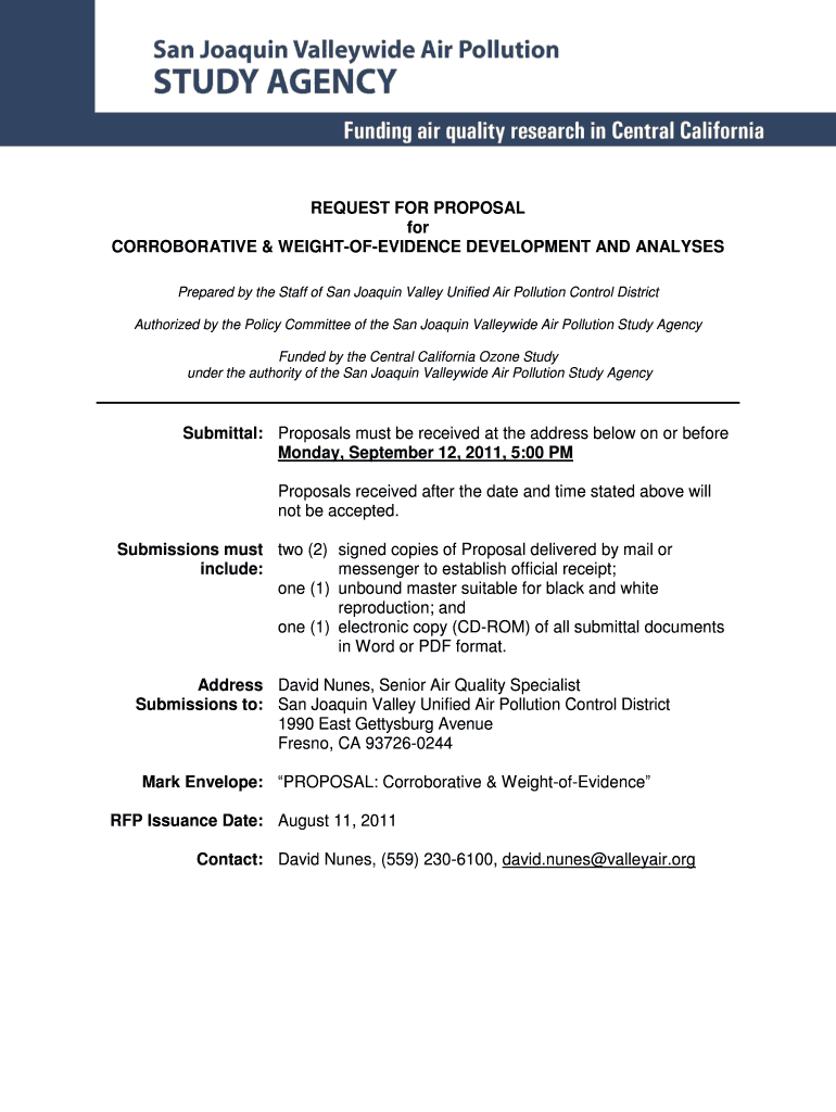 Get the free REQUEST FOR PROPOSAL for CORROBORATIVE amp WEIGHT-OF-EVIDENCE - valleyair