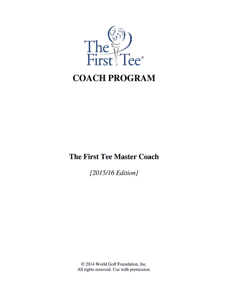 COACH Program First Tee Master Coach 2015/16 Edition 2014 World Golf Foundation, Inc. All rights reserved. Use with permission. THE FIRST REMASTER COACH TABLE OF CONTENTS FIRST TEE MASTER COACH QUICK