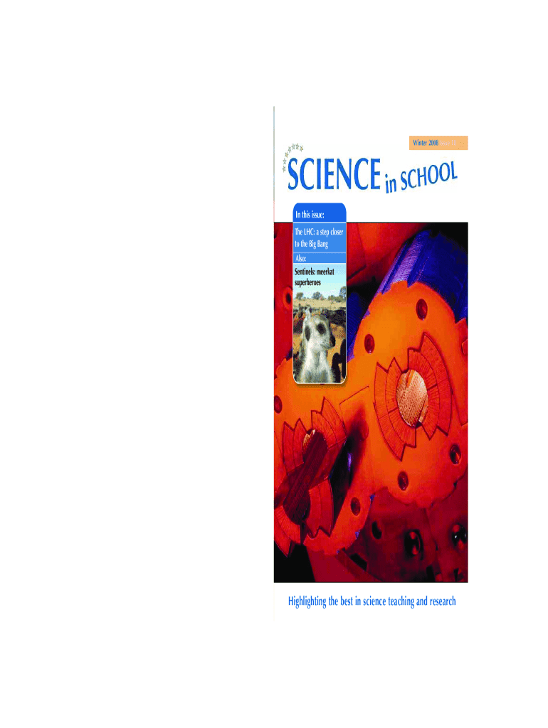 titel_SiS_Issue10_RZ:scienceinschool14.11.200814:23 UhrSeite 1Winter 2008 Issue 10In this issue: The LHC: a step closer to the Big Bang Also: Sentinels: meerkat superheroesPublished by EIROforum:ISSN: