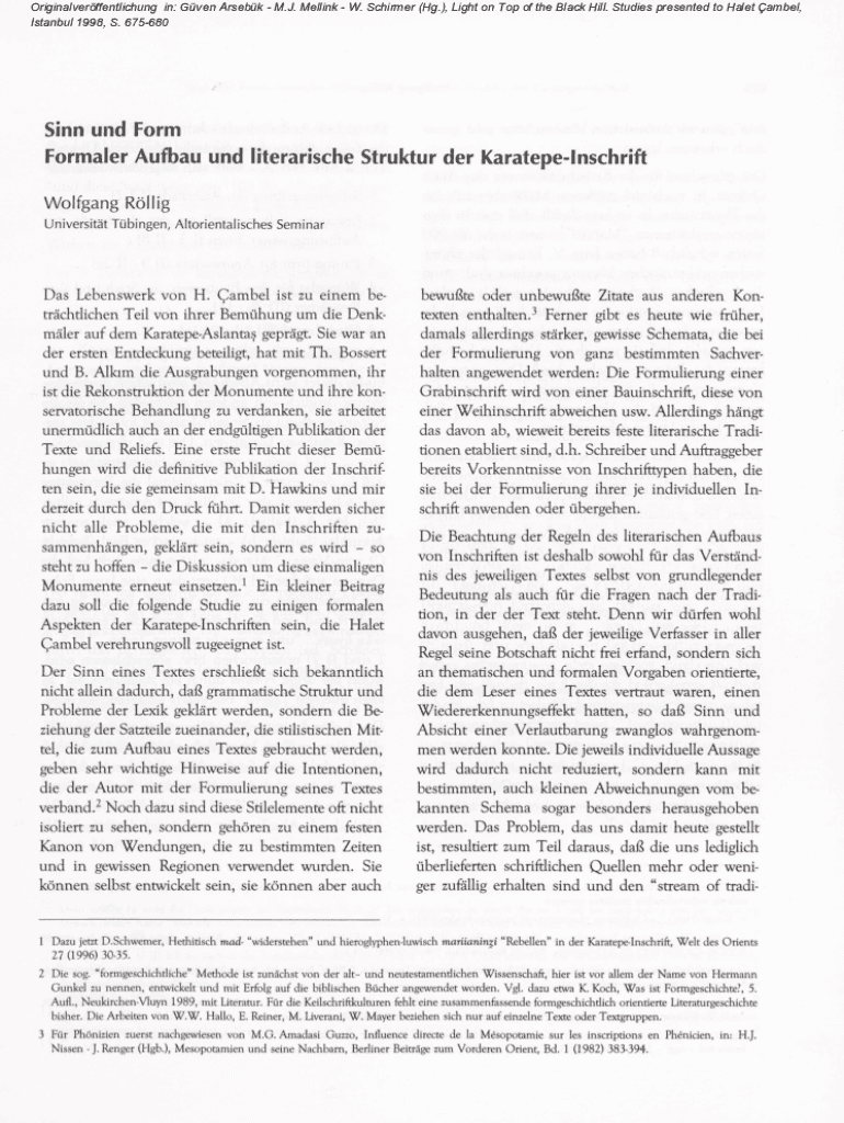 Originalverffentlichung in: Even Arneb M.J. Mel link W. Schiller (Hg.), Light on Top of the Black Hill. Studies presented to Halt Abel, Istanbul 1998, S. 675680Sinn UND Form Formal her UFBA UND literarische