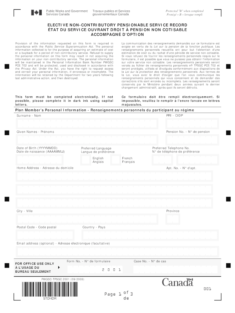 Any Canadian public service employee who has non-contributory service can use this form for pension estimation or buyback. It is also relevant for compensation advisors assisting these employees.