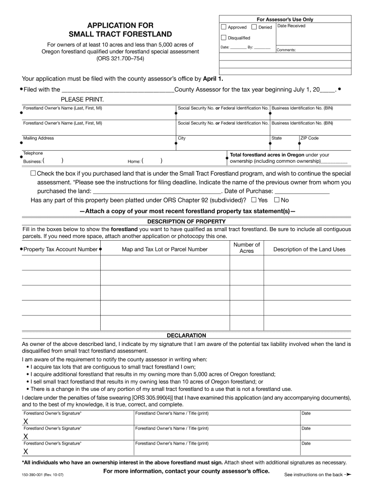 Filing the Oregon Small Tract Forestland Application requires adherence to specific deadlines, the crucial date being April 1. Forestland owners must ensure their application is submitted by this date to avail themselves of any special assessments.