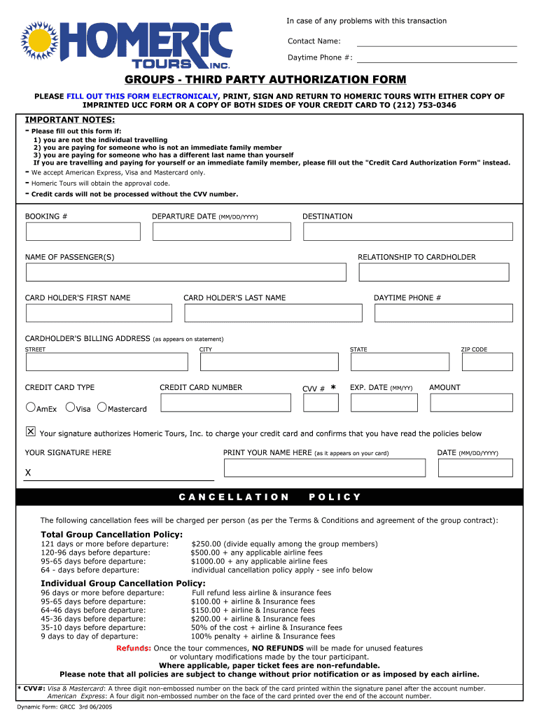 Get the free Homeric Tours Third Party Authorization Form