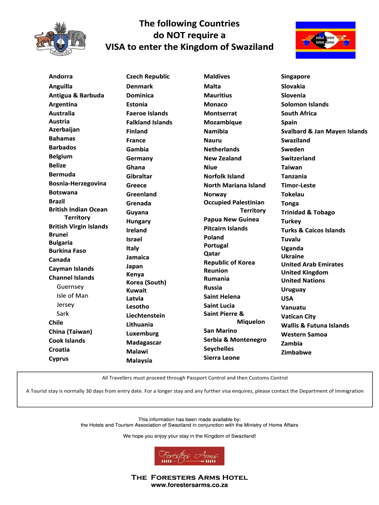 Get the free Swaziland Visa Application Form