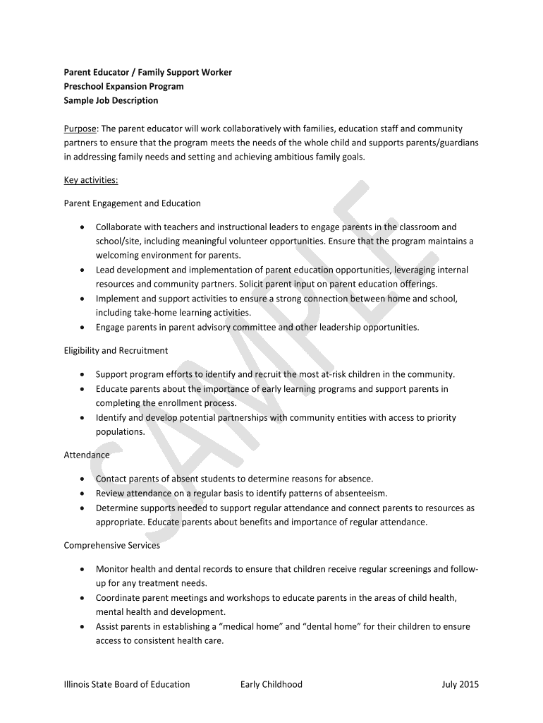 Get the free Parent Educator / Family Support Worker Preschool Expansion Program - Sample Job Des...