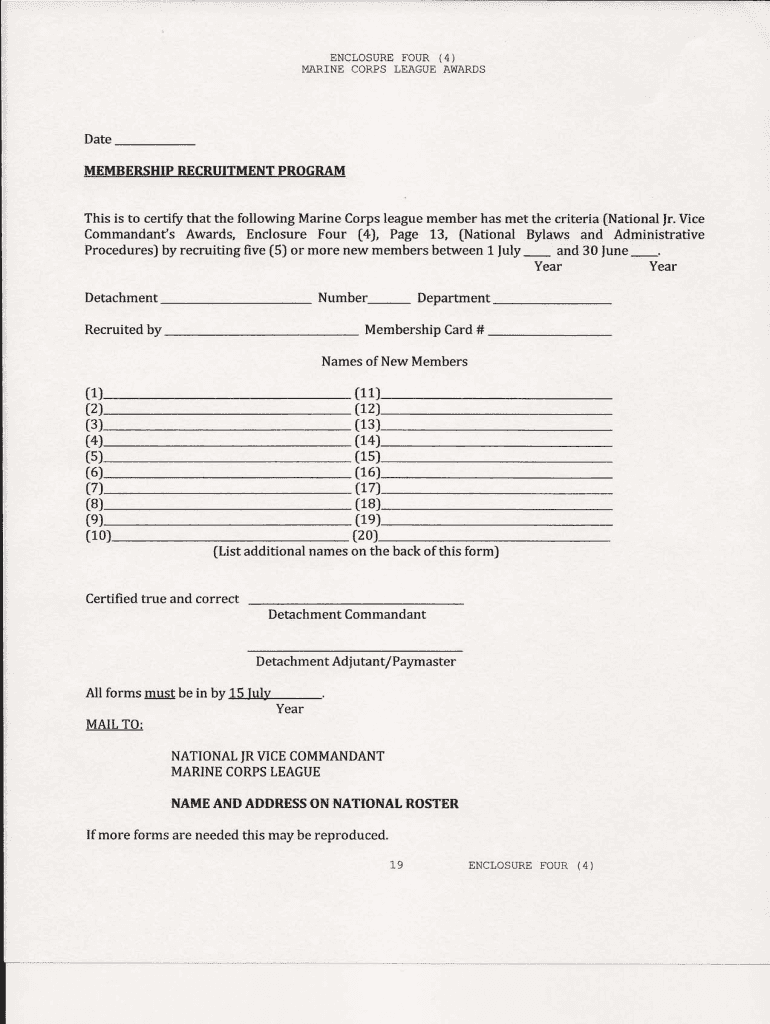 Get the free Marine Corps League Membership Recruitment Program