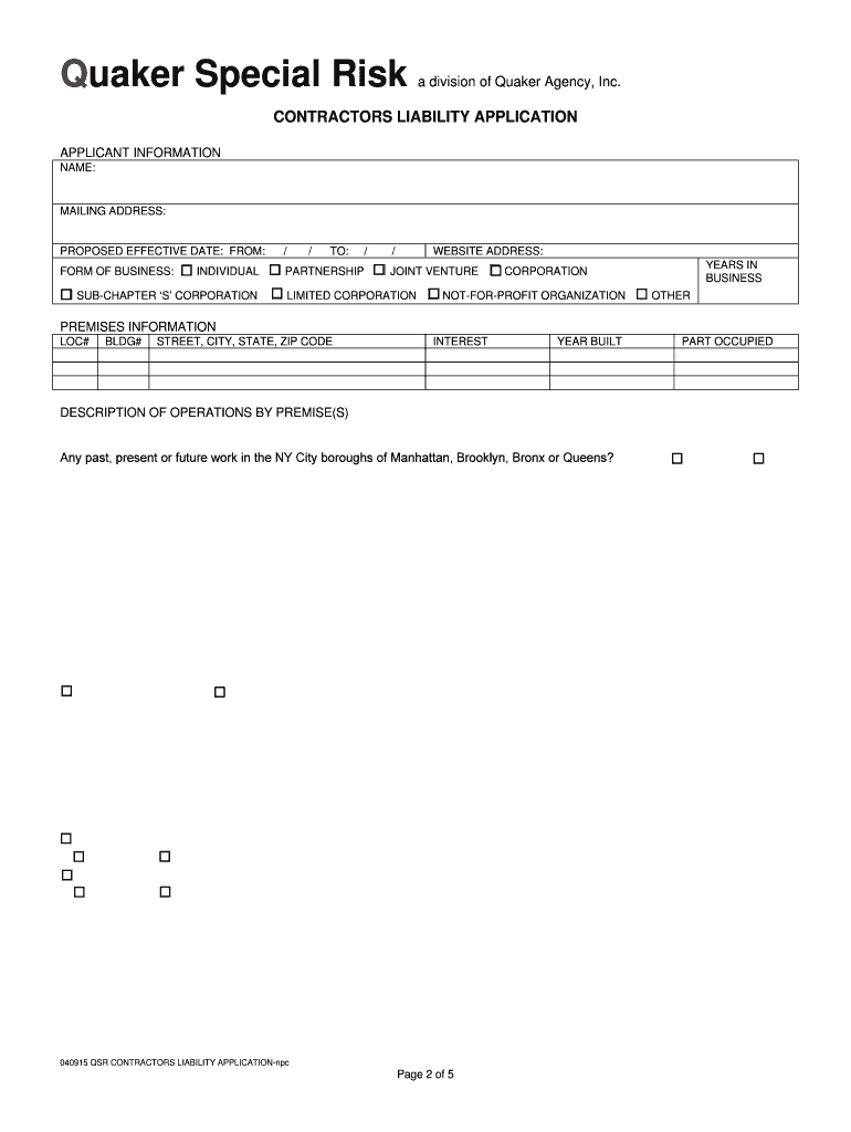 Get the free Contractors Liability Application