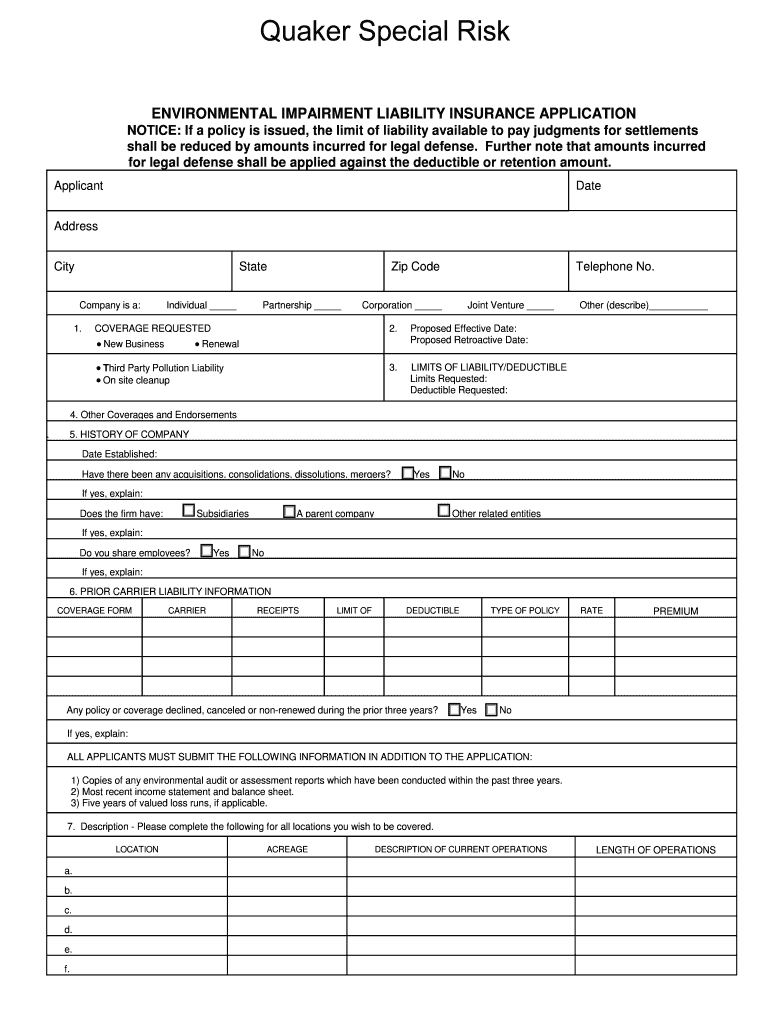 ENVIRONMENTAL IMPAIRMENT LIABILITY INSURANCE APPLICATION