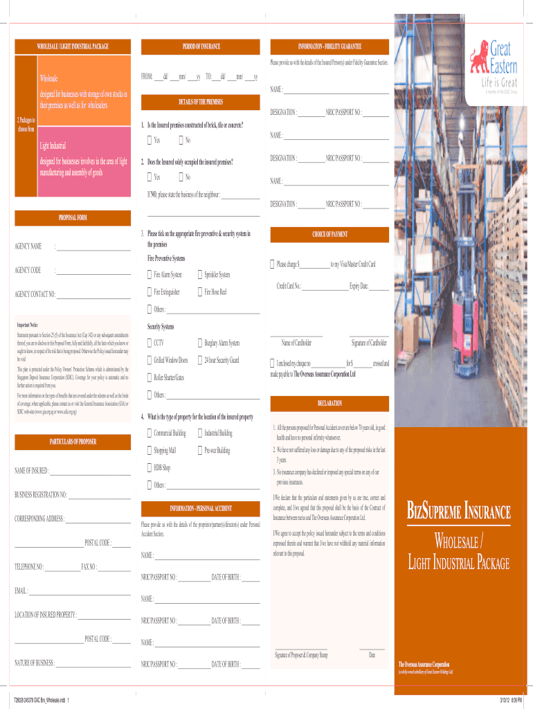 PERIOD OF INSURANCE WHOLESALE / LIGHT INDUSTRIAL PACKAGE INFORMATION FIDELITY GUARANTEE Please provide us with the details of the Insured Person(s) under Fidelity Guarantee Section. FROM: dd/ mm/