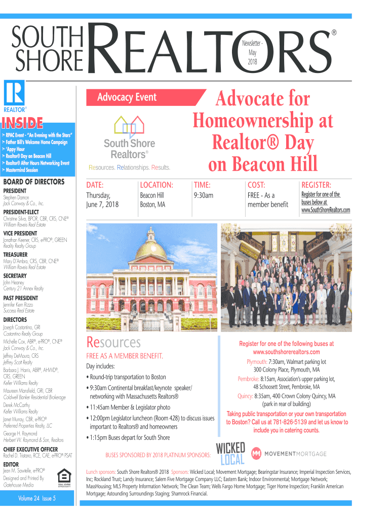 Newsletter May 2018Advocacy Event PAC Event An Evening with the Stars Father Bills Welcome Home Campaign Apply Hour Realtor Day on Beacon Hill Realtor After Hours Networking Event Mastermind SessionBOARD