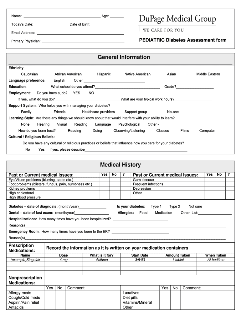 Get the free Pediatric Diabetes Assessment Form