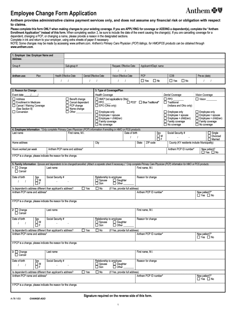 The Anthem Employee Change Form offers several key features to simplify the completion process: