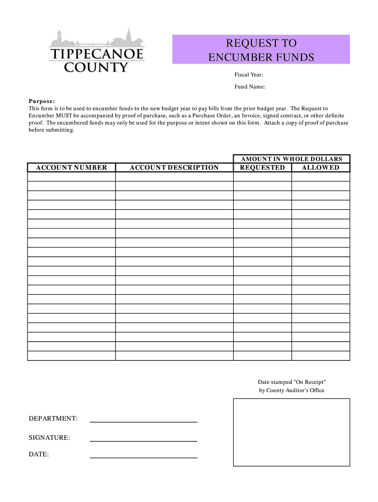 SIGNATURE: DATE: Date stamped On Recap t” ... AMOUNT IN WHOLE DOLLARS This form is to be used to encumber funds to the new budget year to pay bills from the prior ...