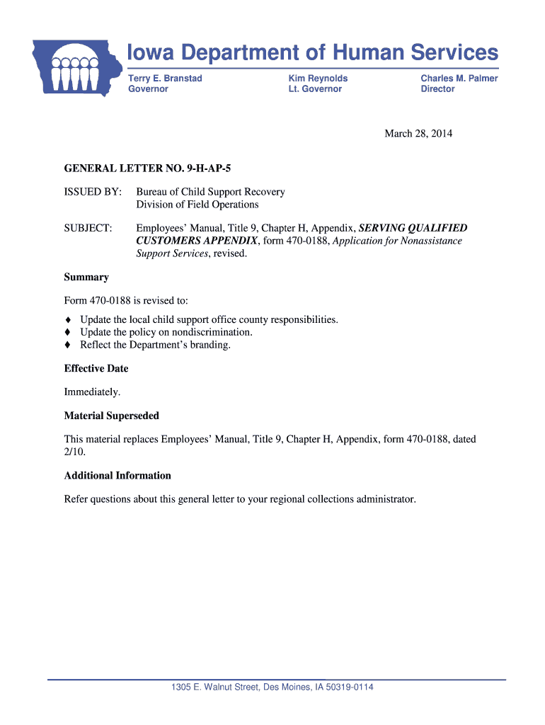 The Iowa Nonassistance Support Services Application is currently provided in English. For assistance in other languages, please contact the Child Support Recovery Unit directly.