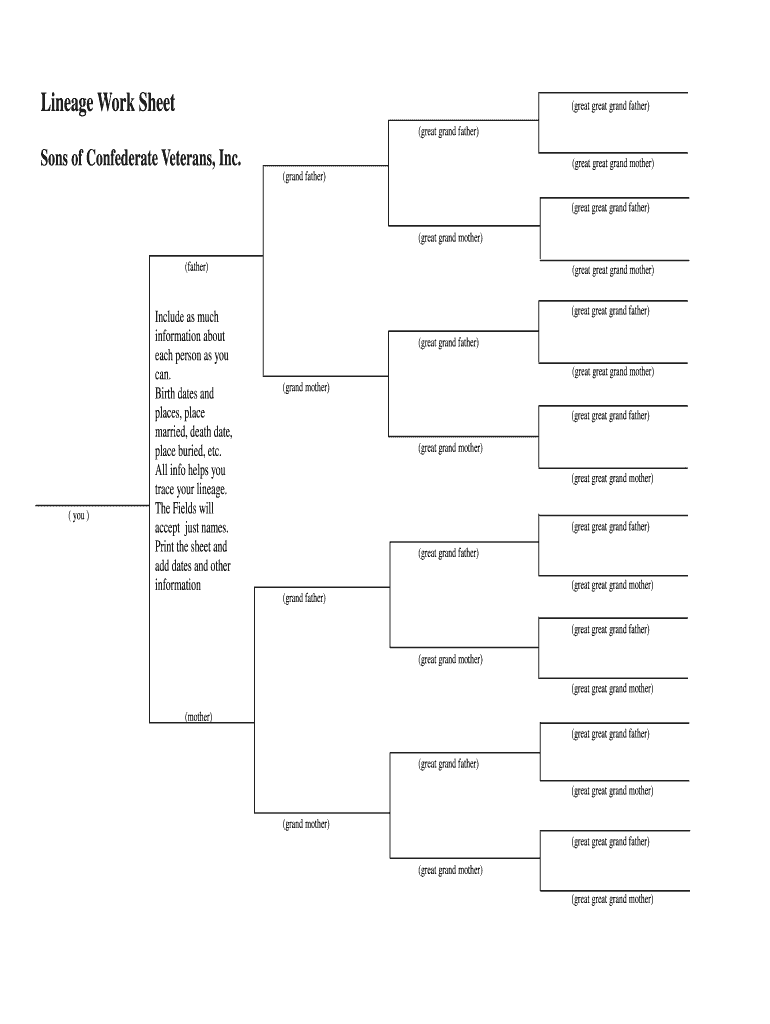 Another significant attribute of the Lineage Work Sheet is its capability for multi-generational tracing. Users can print a lineage sheet easily, ensuring that all necessary family information is readily available.