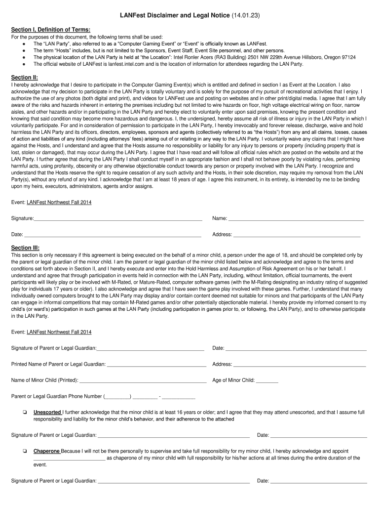 LANFest - Nationwide LAN forms can be filled out online or by mail, providing all required information about the event.