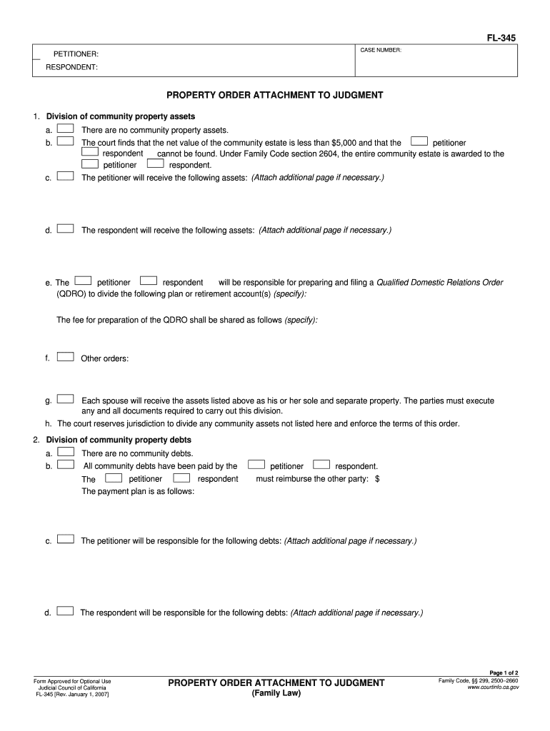 1.Access the California Property Order Attachment to Judgment form on pdfFiller by visiting their website and searching for 'FL-345'.