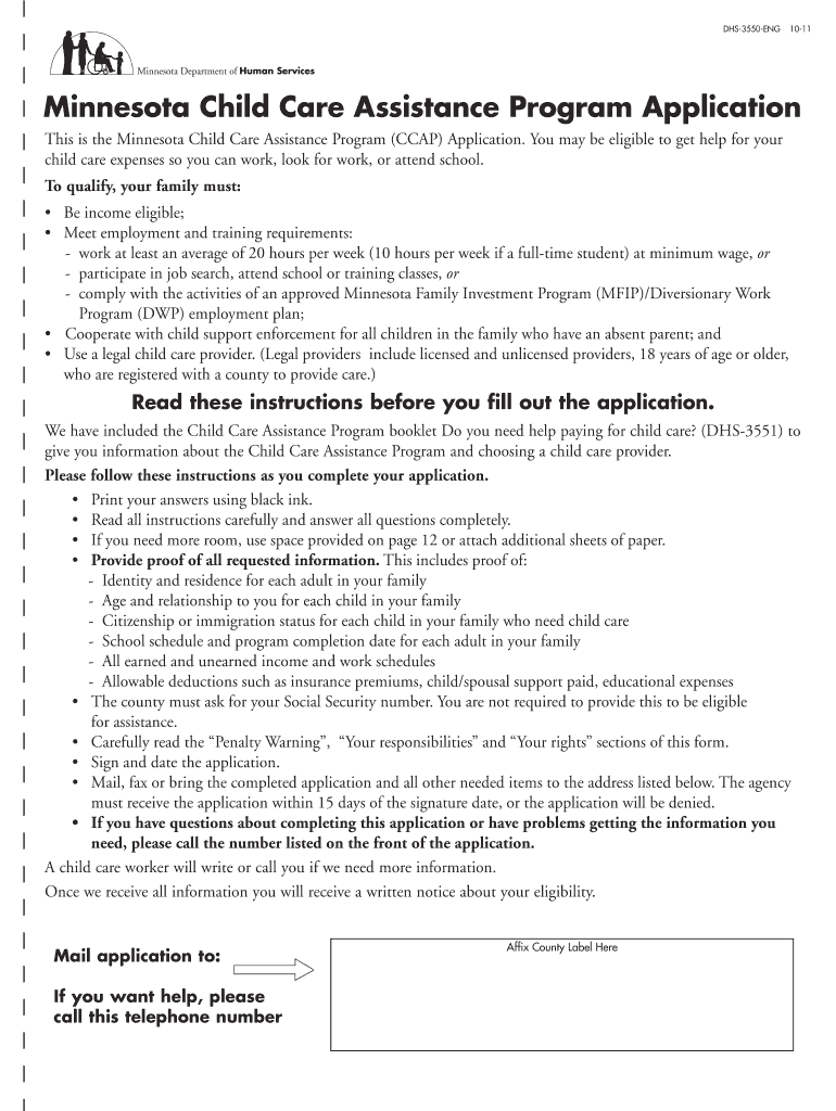 Get the free Minnesota Child Care Assistance Program Application