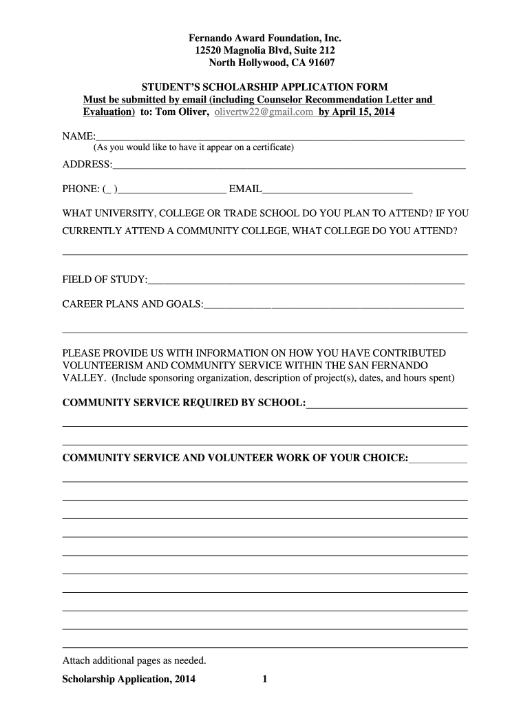 How to fill out 2014 fernando award scholarship