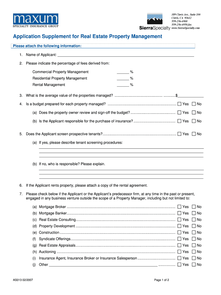 This application supplement plays a vital role in helping property managers convey their business capabilities and mitigate potential risks associated with property management.