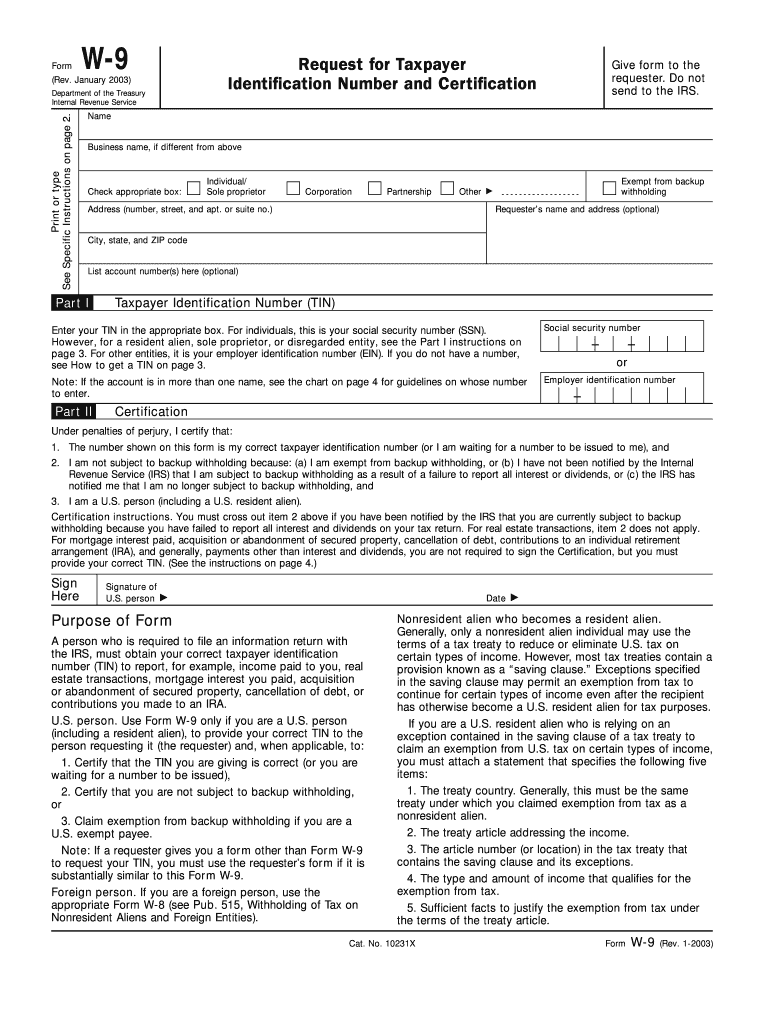 What is the Form W-9 Request for Taxpayer Identification Number?