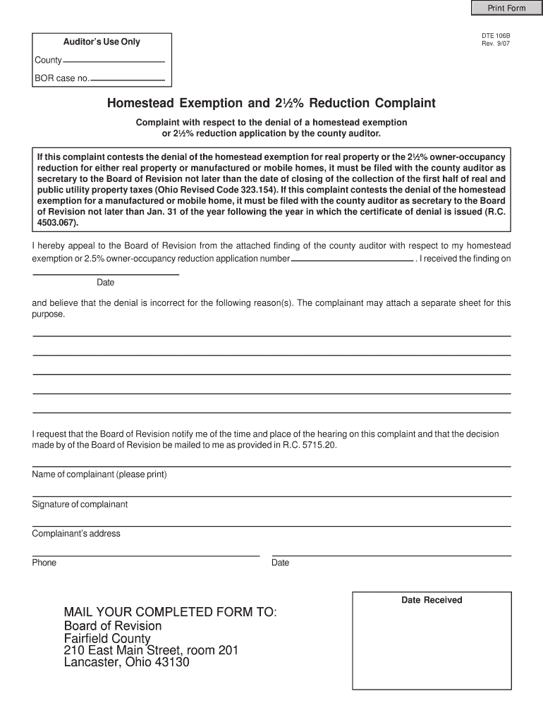 Get the free Homestead Exemption Complaint Form