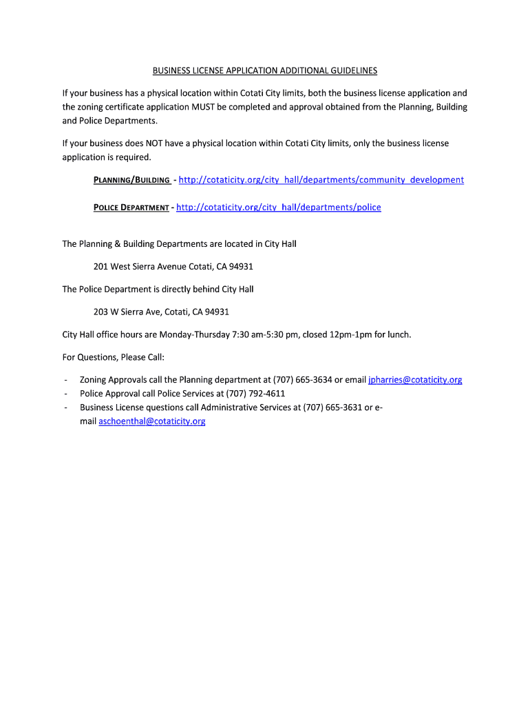 Get the free BUSINESS LICENSE APPLICATION ADDITIONAL ... - City of Cotati