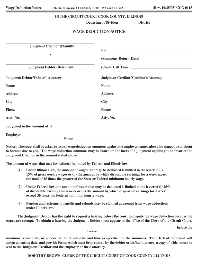 Get the free Wage Deduction Notice